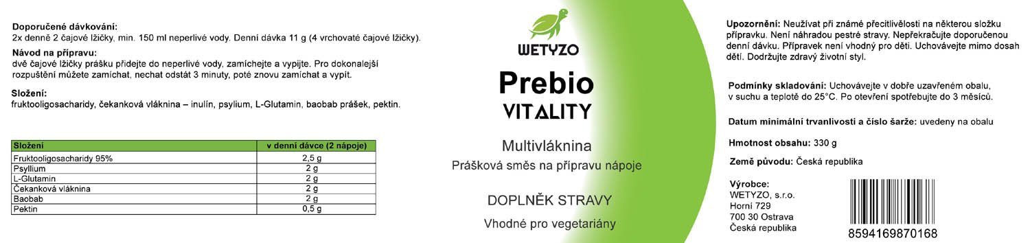 Složení: fruktooligosacharidy, čekanková vláknina - inulin, psylium, L - Glutamin, baobab prášek, pektin.
